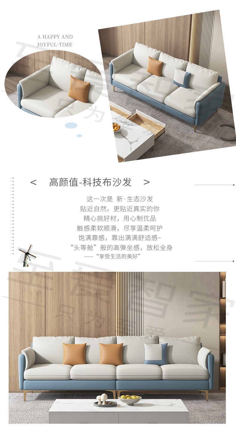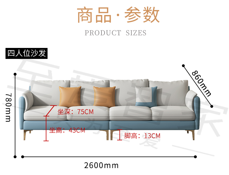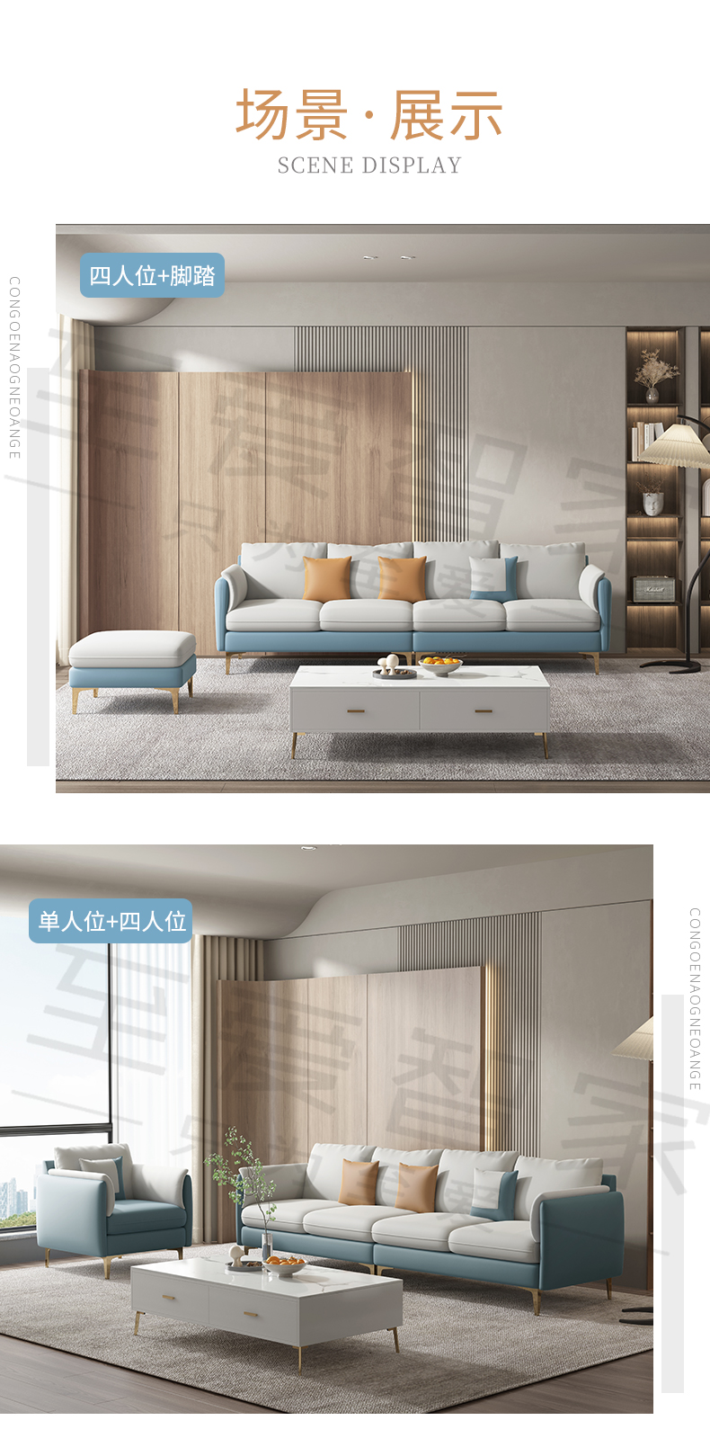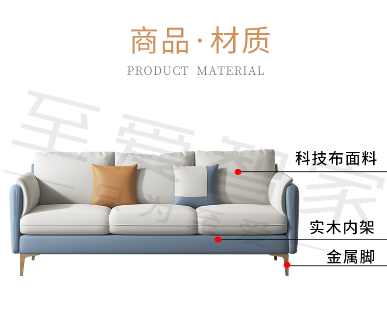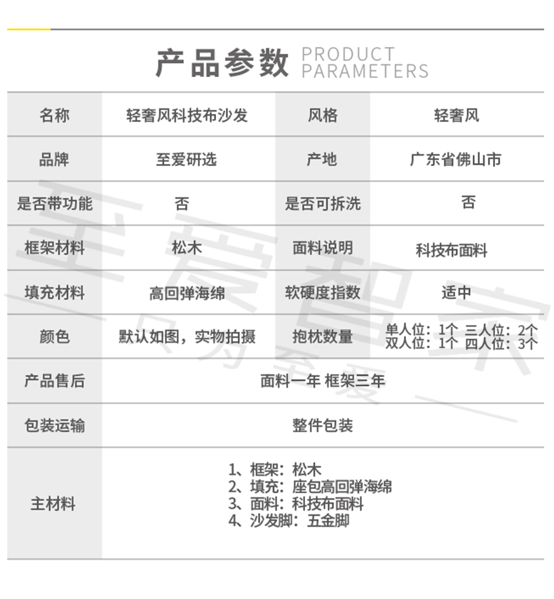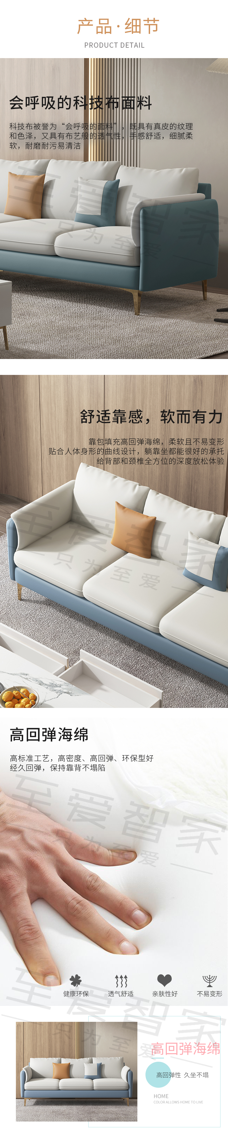 - 商品名称: 轻奢风科技布沙发 ZASFB-045 四人位+脚踏