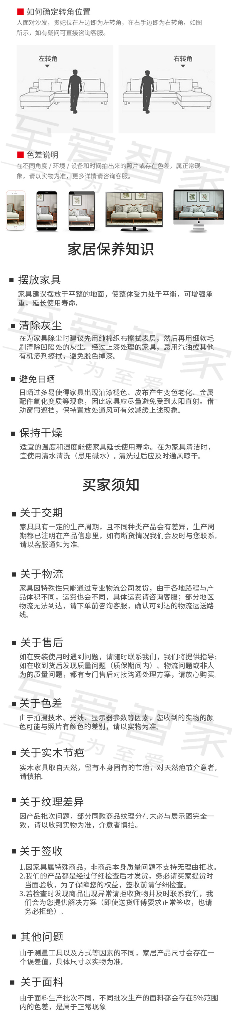 沙发方向选购说明:以人面向沙发为标准定贵妃方向